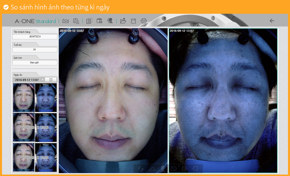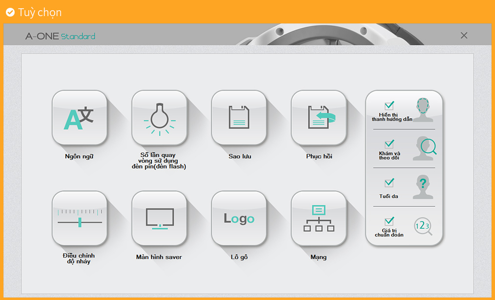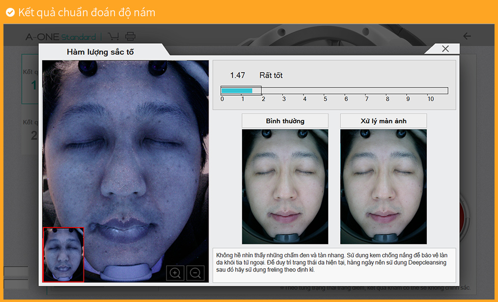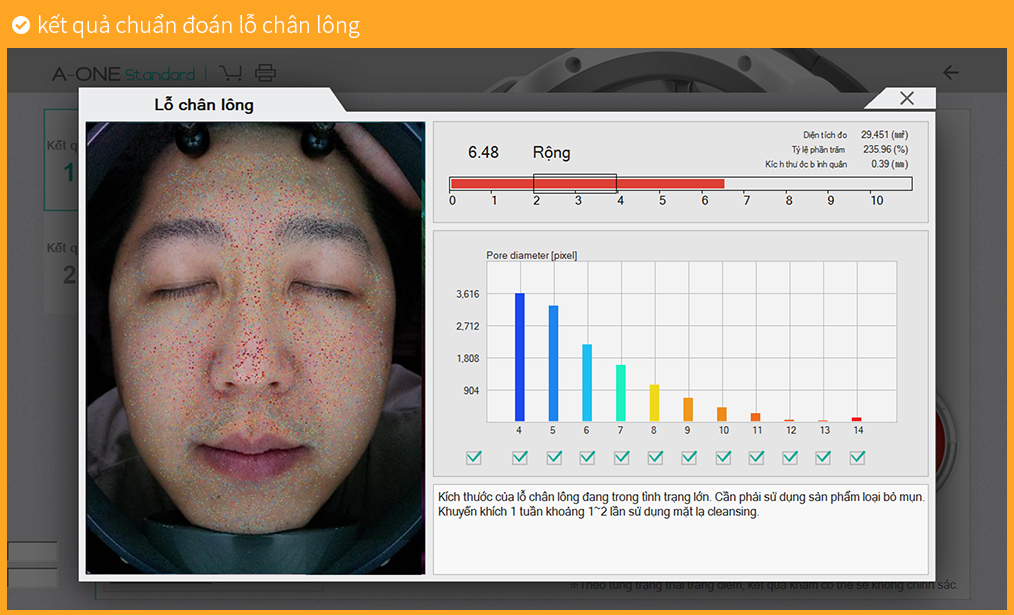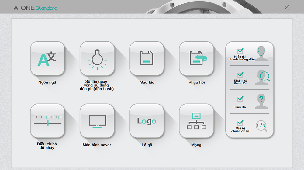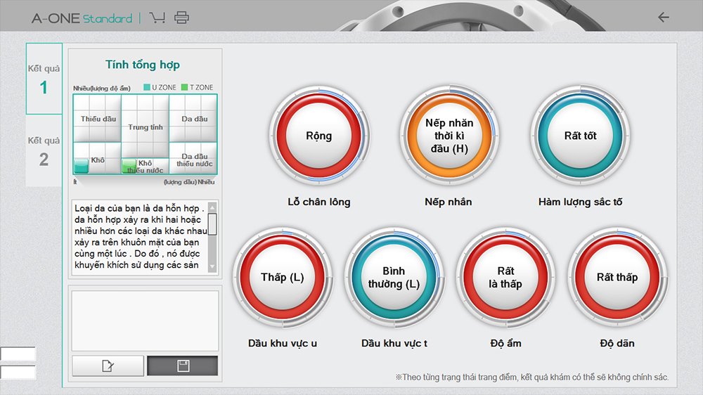 - Chuẩn đoán hạng mục 6 loại của da bằng cảm ứng EM và máy camera có độ phân giải cao.