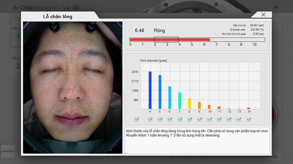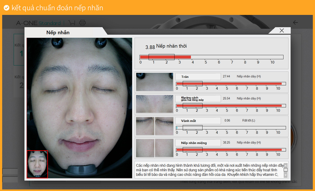 - Lỗ chân lông, dầu (khu vựcU, khu vựcT), nếp nhăn nếp nám ,độ ẩm (khu vựcU, khu vựcT) phân tích các tầng sâu đàn hồi