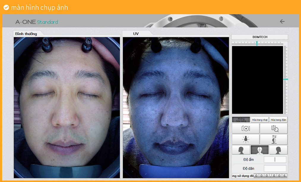 ▶ Hạng mục chuẩn đoán: Lỗ chân lông ,dầu, nám , nếp nhăn, độ ẩm và độ đàn hồi. - Tự động lựa chọn Mắt, Mũi, Miệng. Lông mày